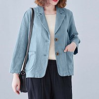 เสื้อคลุมเสื้อสูททรงหลวมสไตล์อาร์ตผ้าฝ้ายลินินสีพื้นคอพับแขนยาว